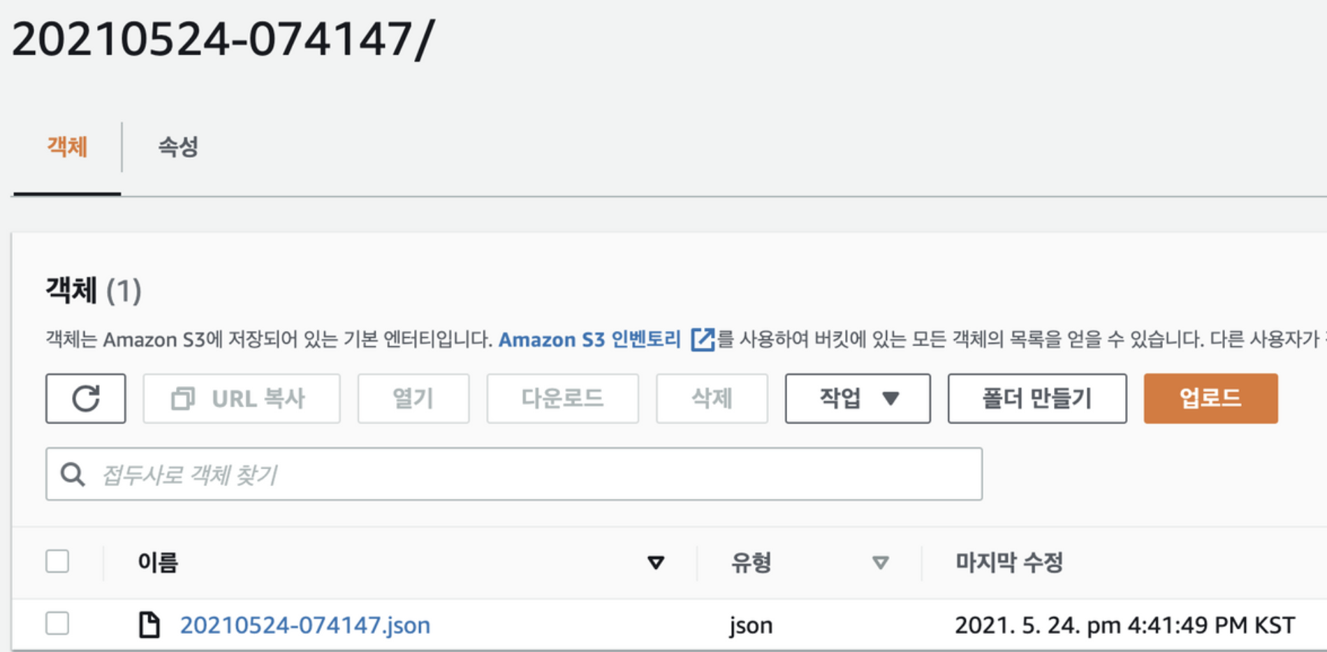 크롤링에 대해서는 잘 모르지만 파이썬 코드는 이렇게 매번 S3로 크롤링 한 내용이 저장되게 해두었다.