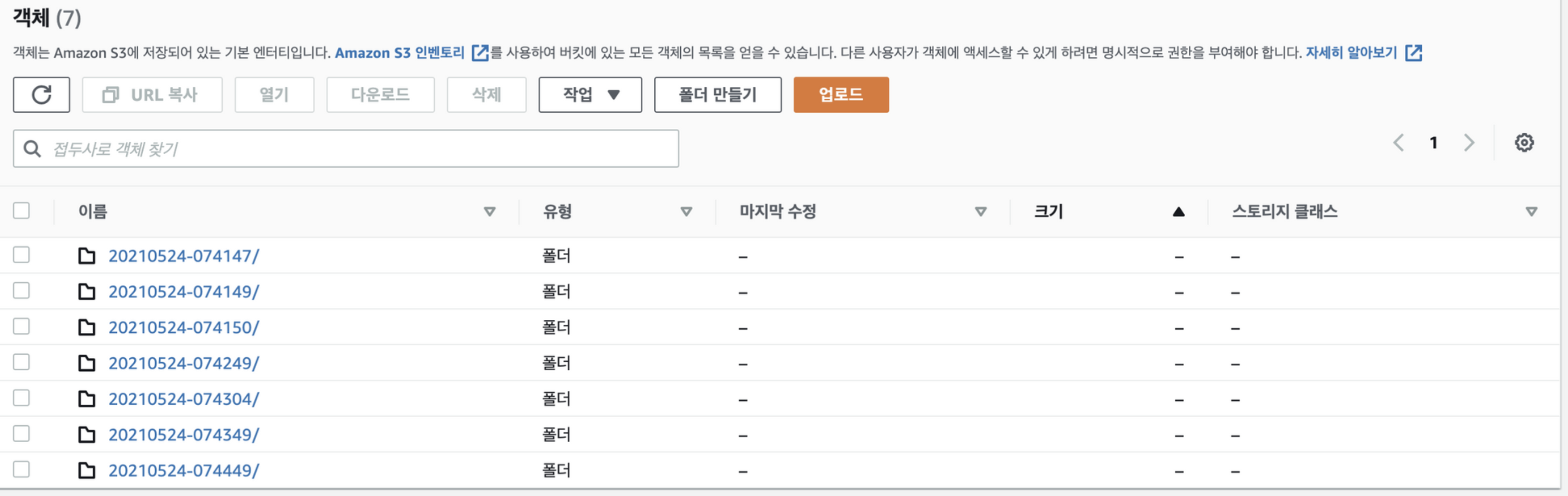s3에 결과물로 떨어진 파일들도 들어와있다.