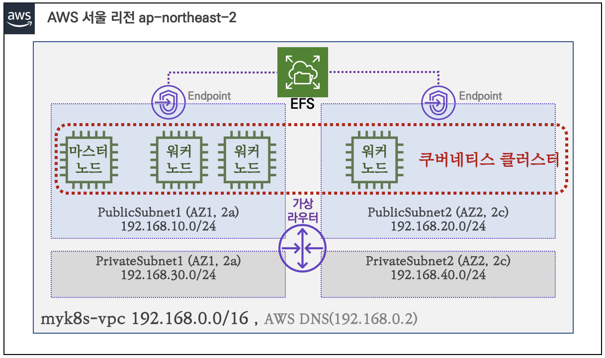aws cloudformation deploy --template-file Cloudformation템플릿파일.yaml --stack-name myk8s --parameter-overrides KeyName=나의Key SgIngressCidr=우리집IP --region ap-northeast-2