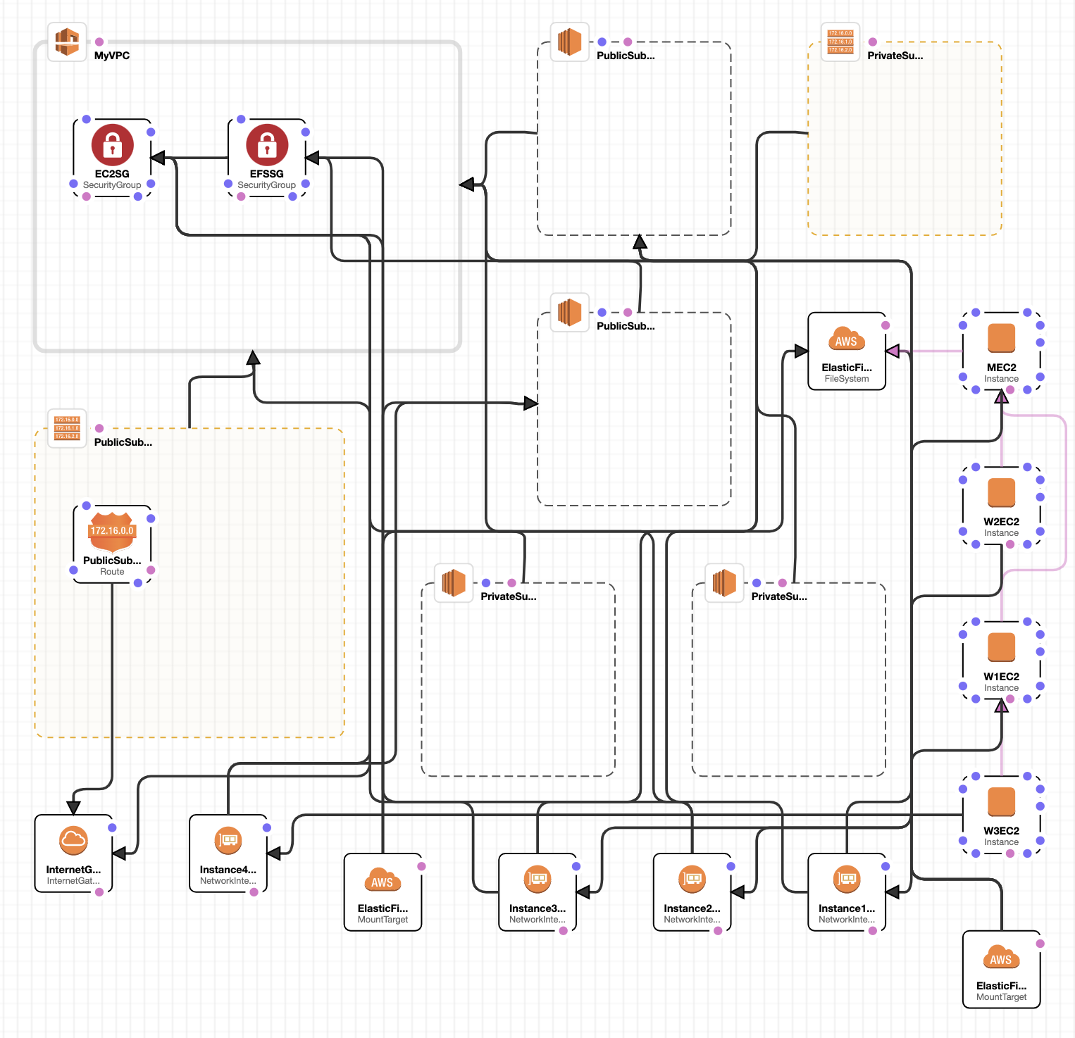 AWS Cloudformation에서 템플릿을 로드하면 아래와 같이 보인다.