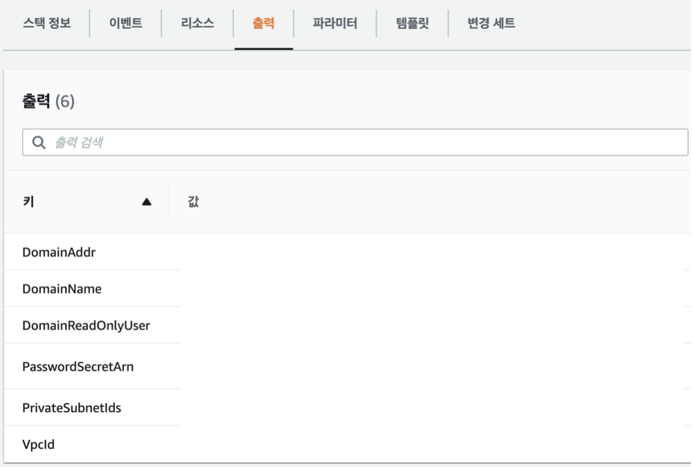 앞서 CloudFormation 으로 생성 후 출력 탭에 나와있던 정보들을 입력해준다.