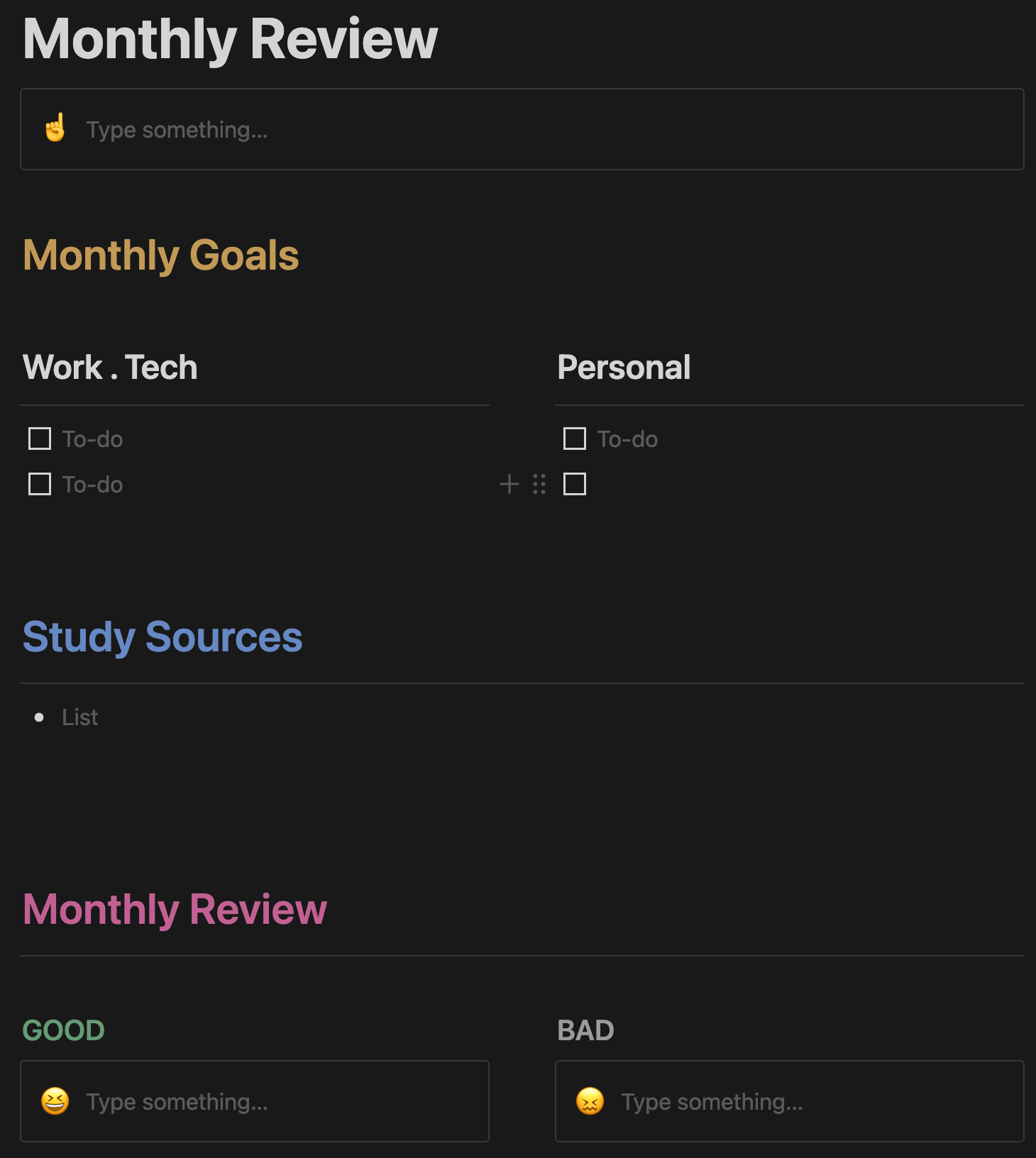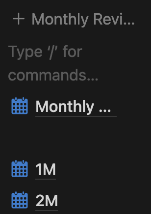 위처럼 + Monthly Review 버튼을 누르면 새 페이지가 생성된다.