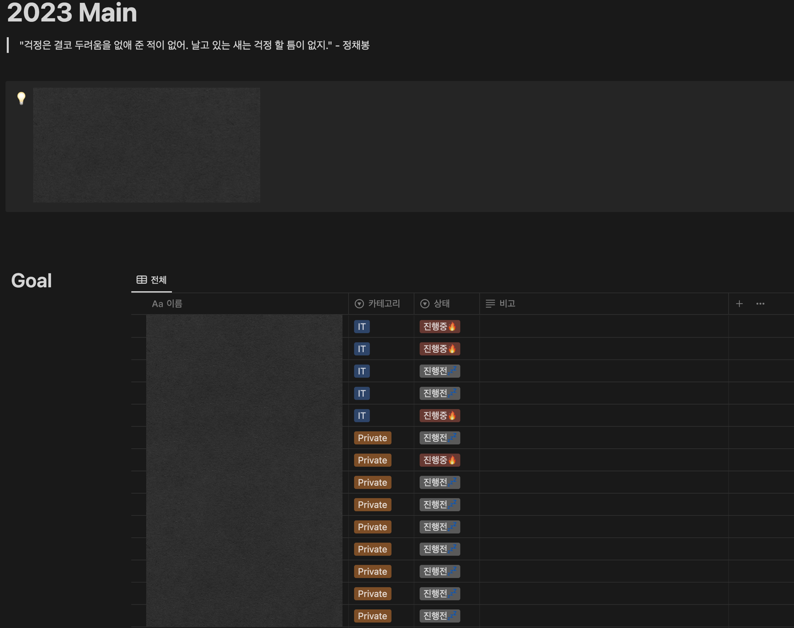 그래서 2023년에는 한 페이지에서 이 모든 것들을 관리하고 싶었다.