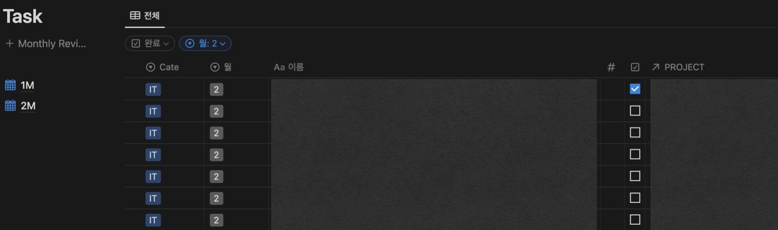 월별로 해야 하는 일들이다. 필터를 통해서 해당 월의 내용들만 볼 수가 있다.