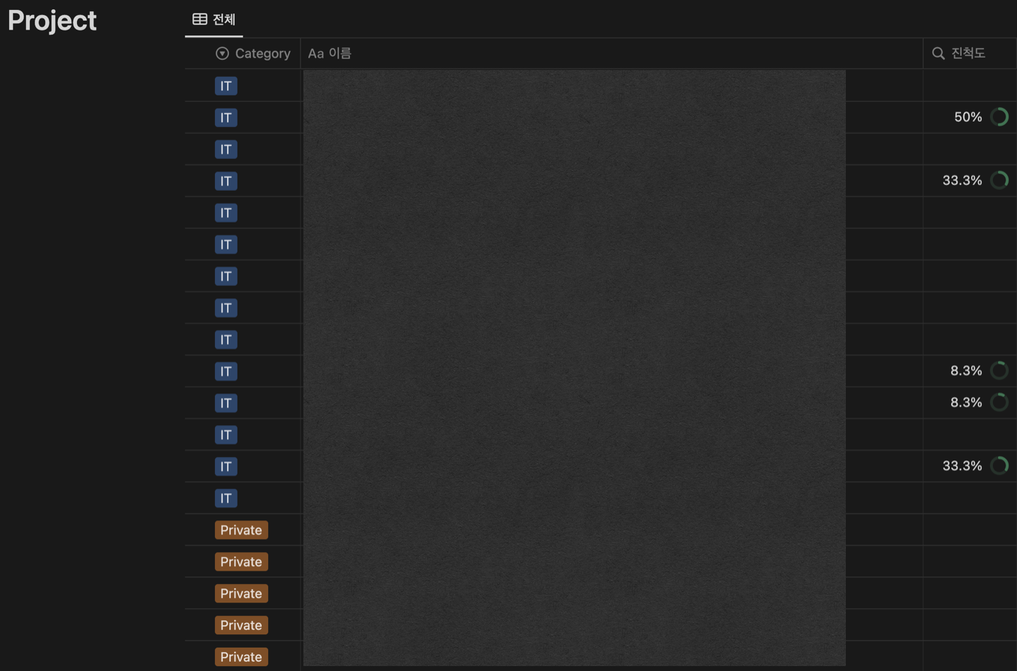 어떤 일을 완료한 뒤 체크박스에 체크를 하면 위의 Project의 달성도 퍼센트가 올라간다.