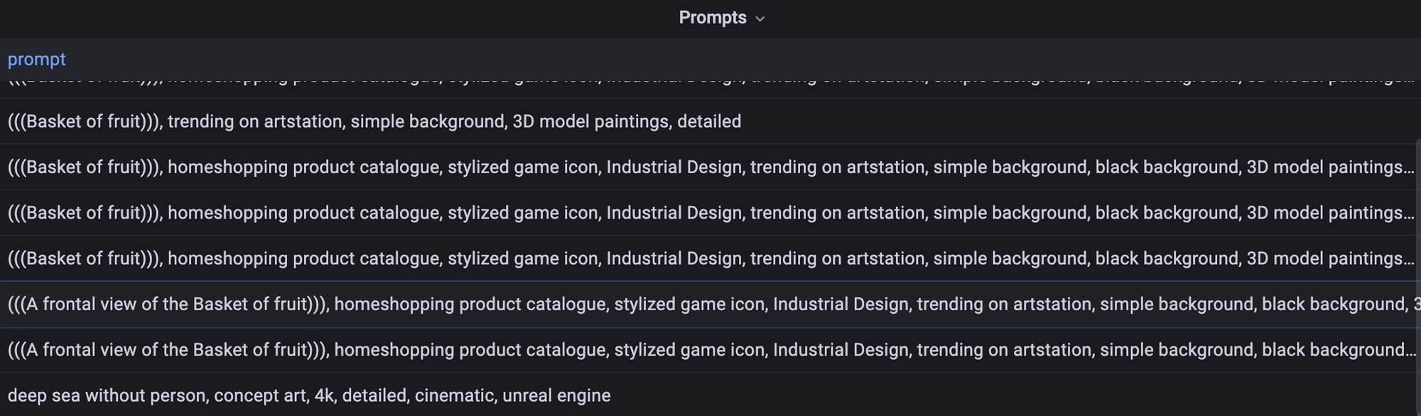 아래처럼 미리 Pod마다 떨구도록 해둔 prompt들을 어떤 것들이 있나 직접 볼 수 있도록 긁어온다던가