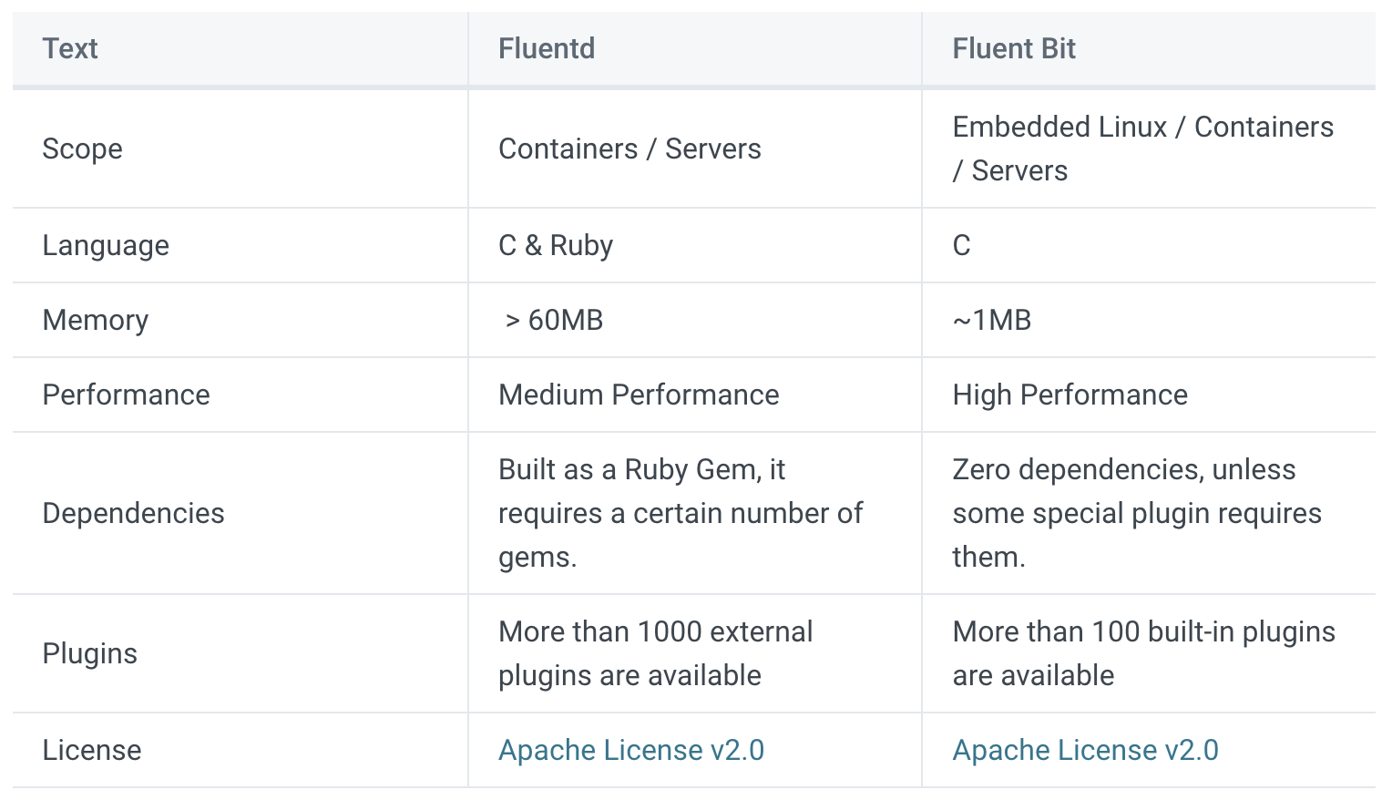 같은 생태계의 Fluentd와 비교하여 고성능이고 메모리 사용량이 적다는 사실을 알 수 있습니다.