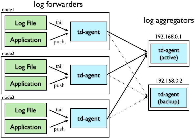 - Log Forwarder : 로컬 이벤트를 수집하기 위해 일반적으로 모든 노드에 설치되며, 이벤트 수신시 Aggregator로 전달