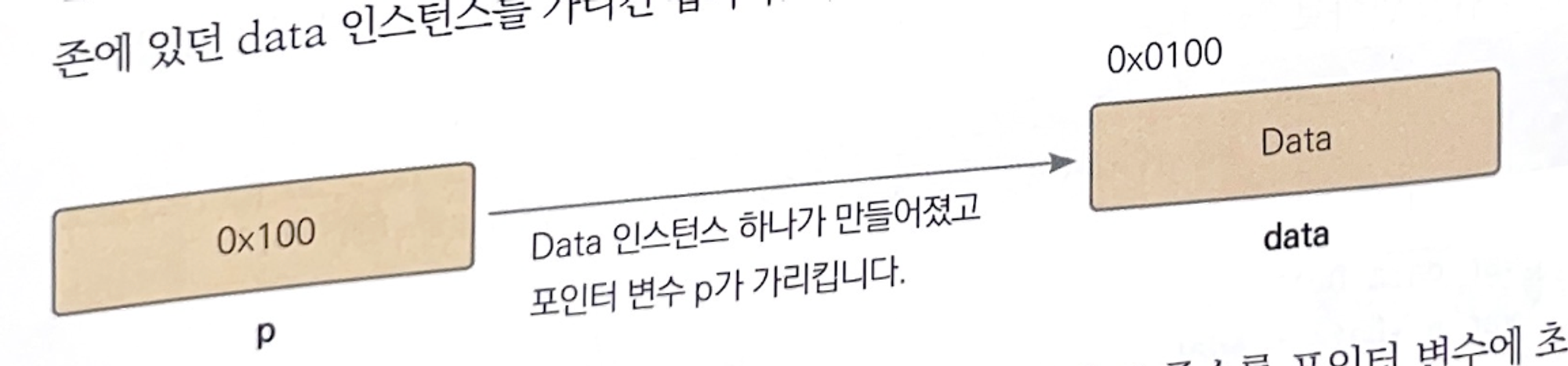 - 이때 p는 data를 가리키는데, p가 생성될 때 새로운 Data 인스턴스가 만들어진게 아니라, 기존에 있던 data 인스턴스를 가리킨 것이다.