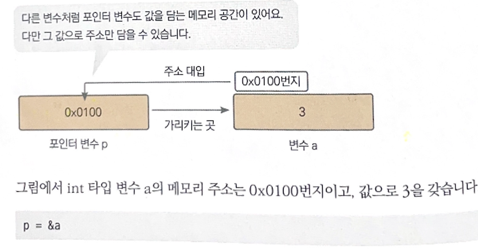 - 이런 메모리 주솟값을 변숫값으로 가질 수 있는 변수를 포인터 변수 라고 한다.