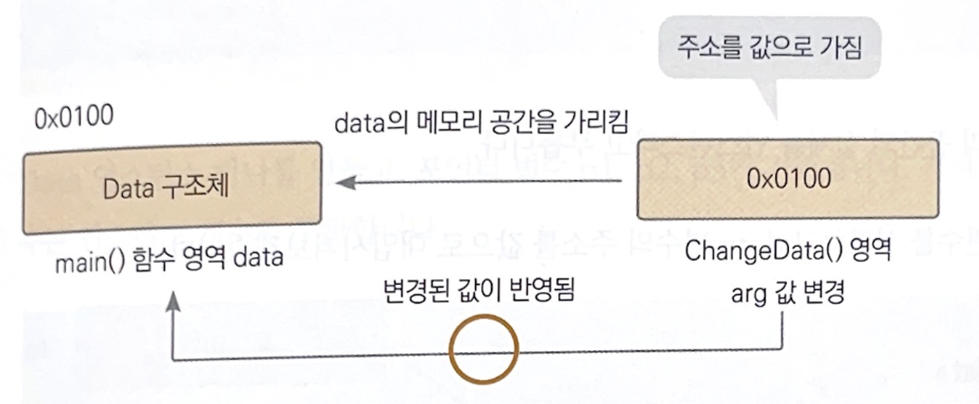 - 아래와 같이 하면 매개변수로 메모리 주소를 전달받아 직접 data 변수를 가리키고 변경하게 된다.