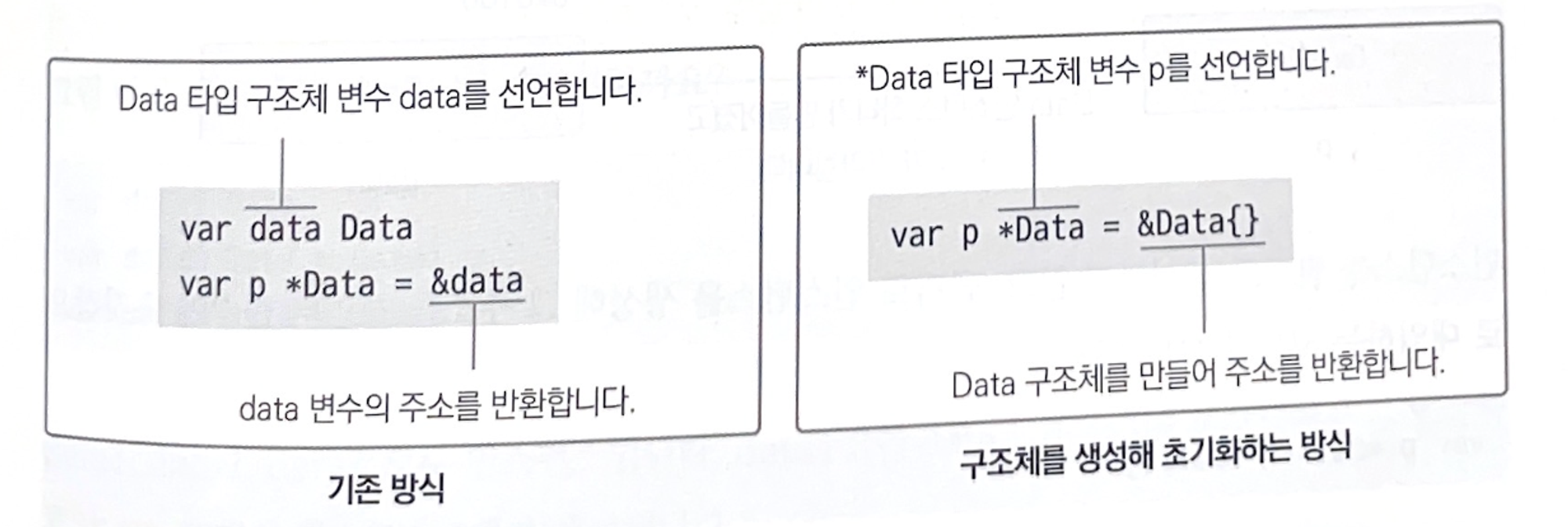var p *int // int 타입 데이터의 메모리 주소를 가리키는 포인터 변수