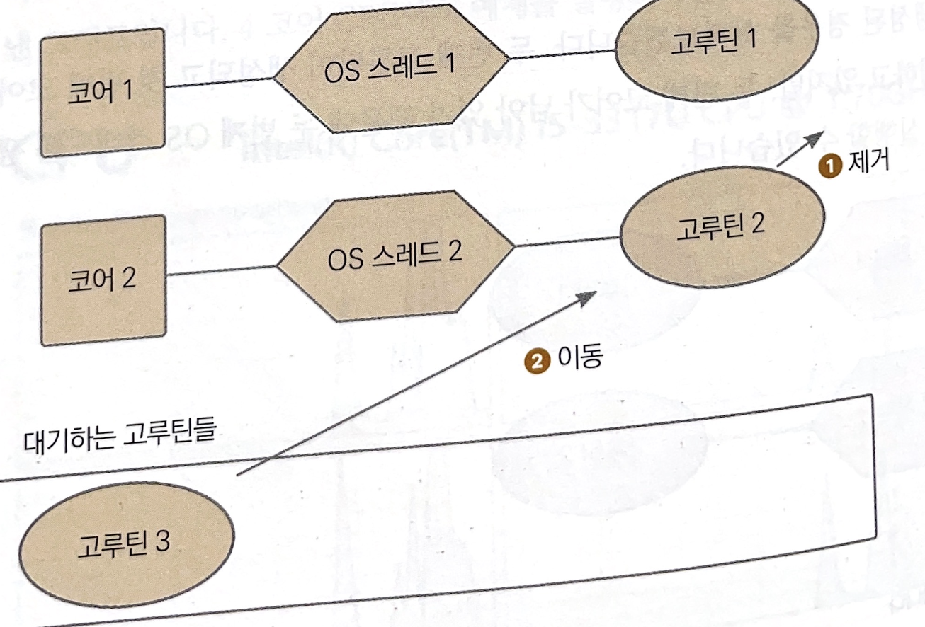 • 실행을 기다리는 다른 루틴에 CPU 코어와 OS 스레드를 할당하여 실행할 수 있게 한다.