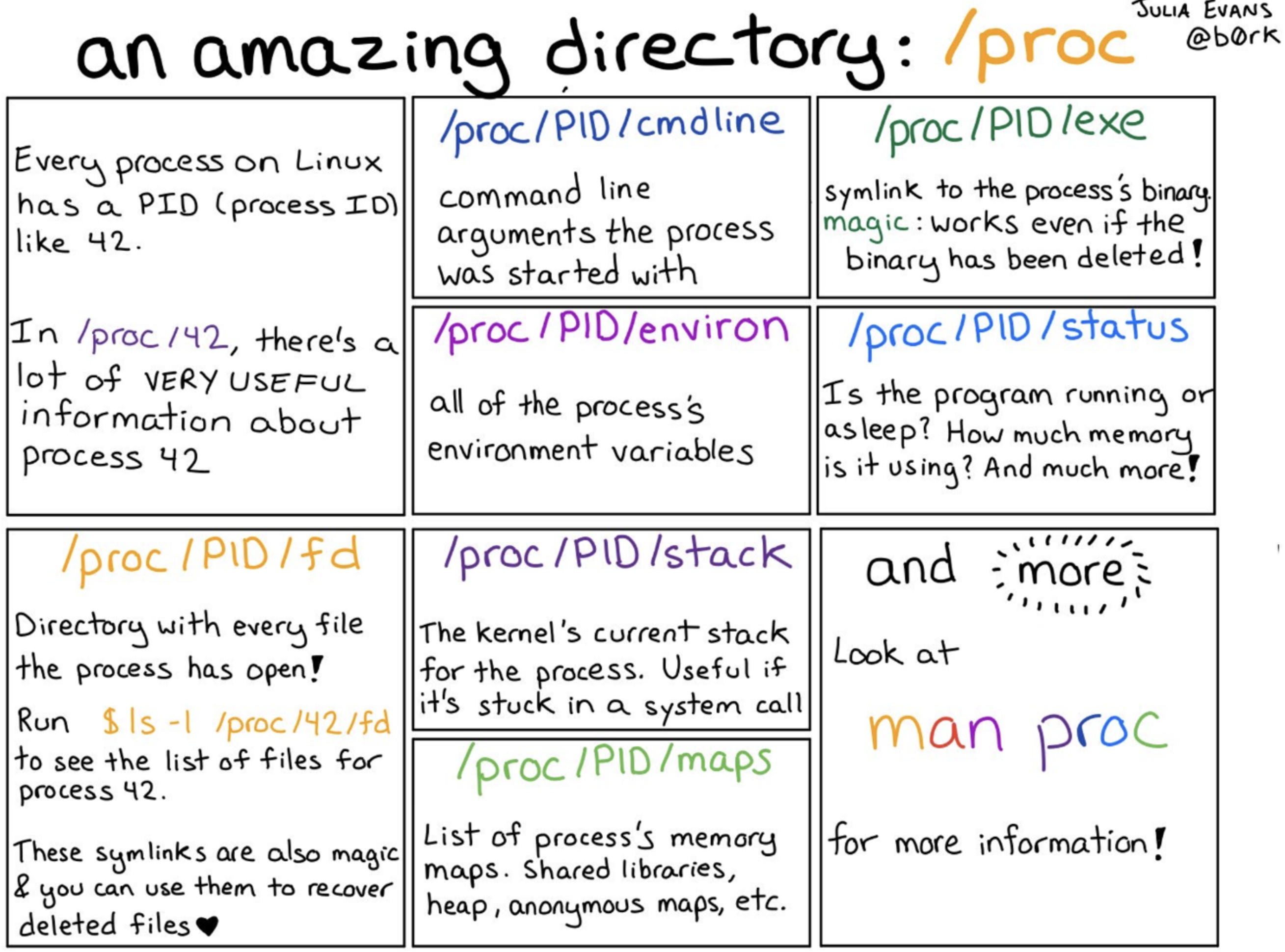 리눅스의 /proc 디렉터리는 커널이 동적으로 write하여 생성하는 정보를 실시간 제공합니다 :