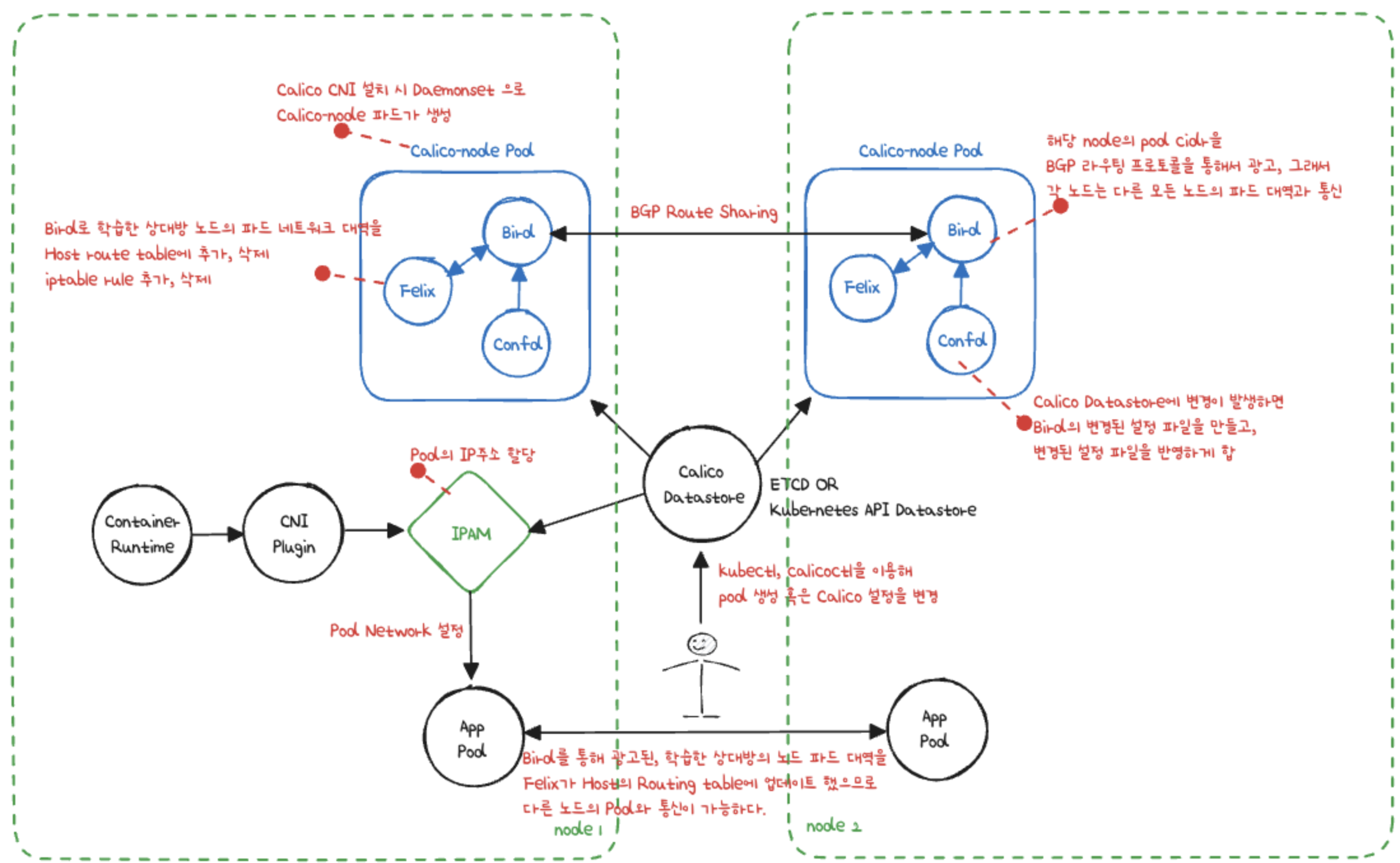 Calico 를 설명하는 그림으로 배웠지만 스스로 이해를 쉽게 하기 위해서 구조를 그려봤습니다.