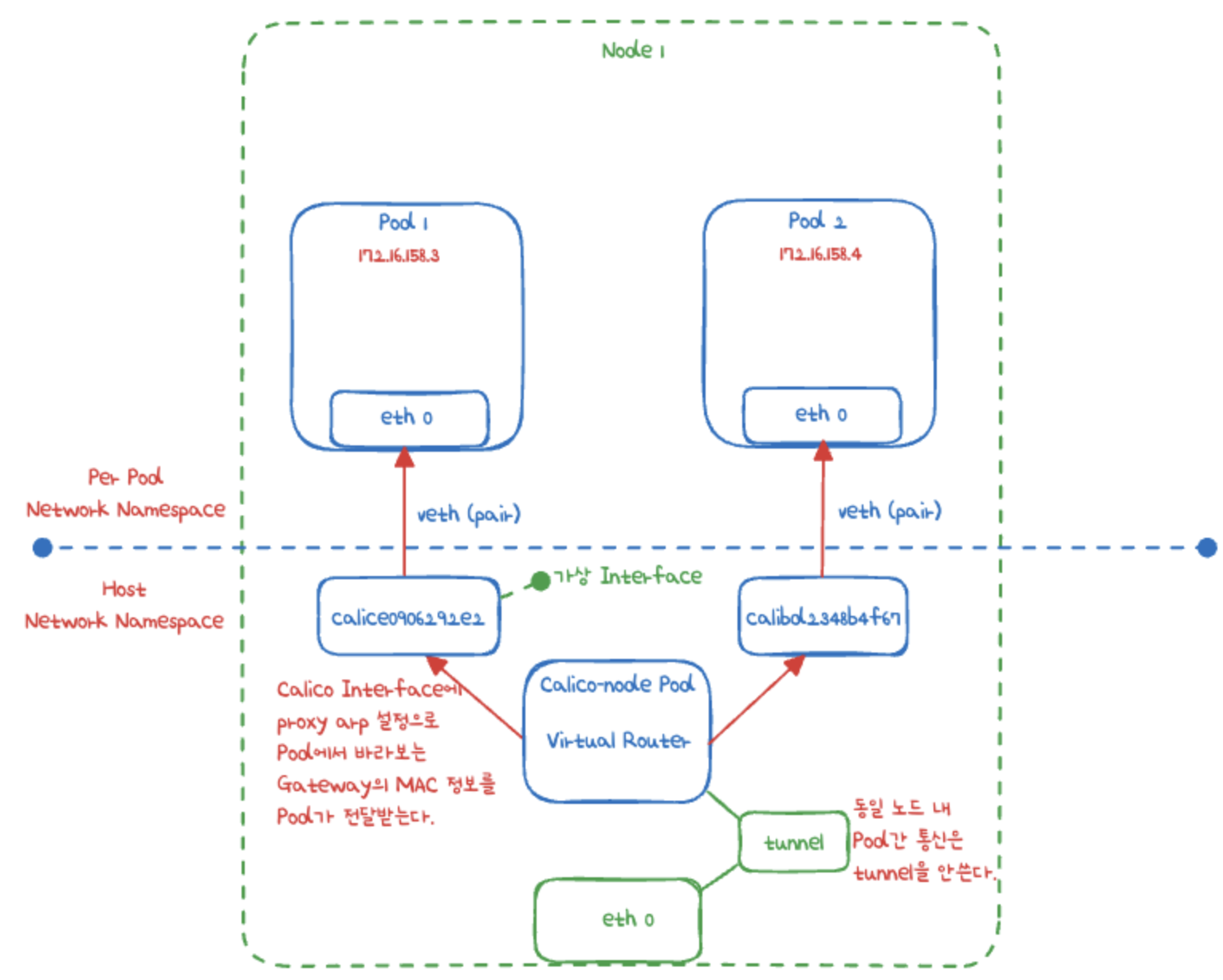 Calico 를 설명하는 그림으로 배웠지만 스스로 이해를 쉽게 하기 위해서 구조를 그려봤습니다.