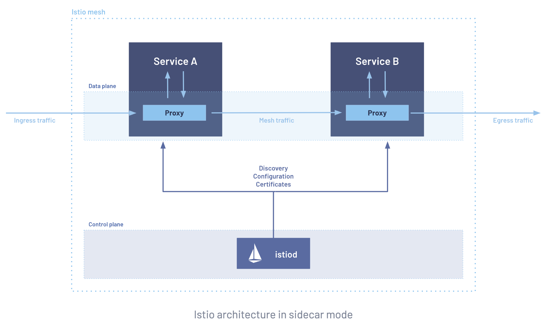- Istio가 적용되는 서비스에는 sidecar로 배포된 Istio proxy가 들어가게 됩니다.