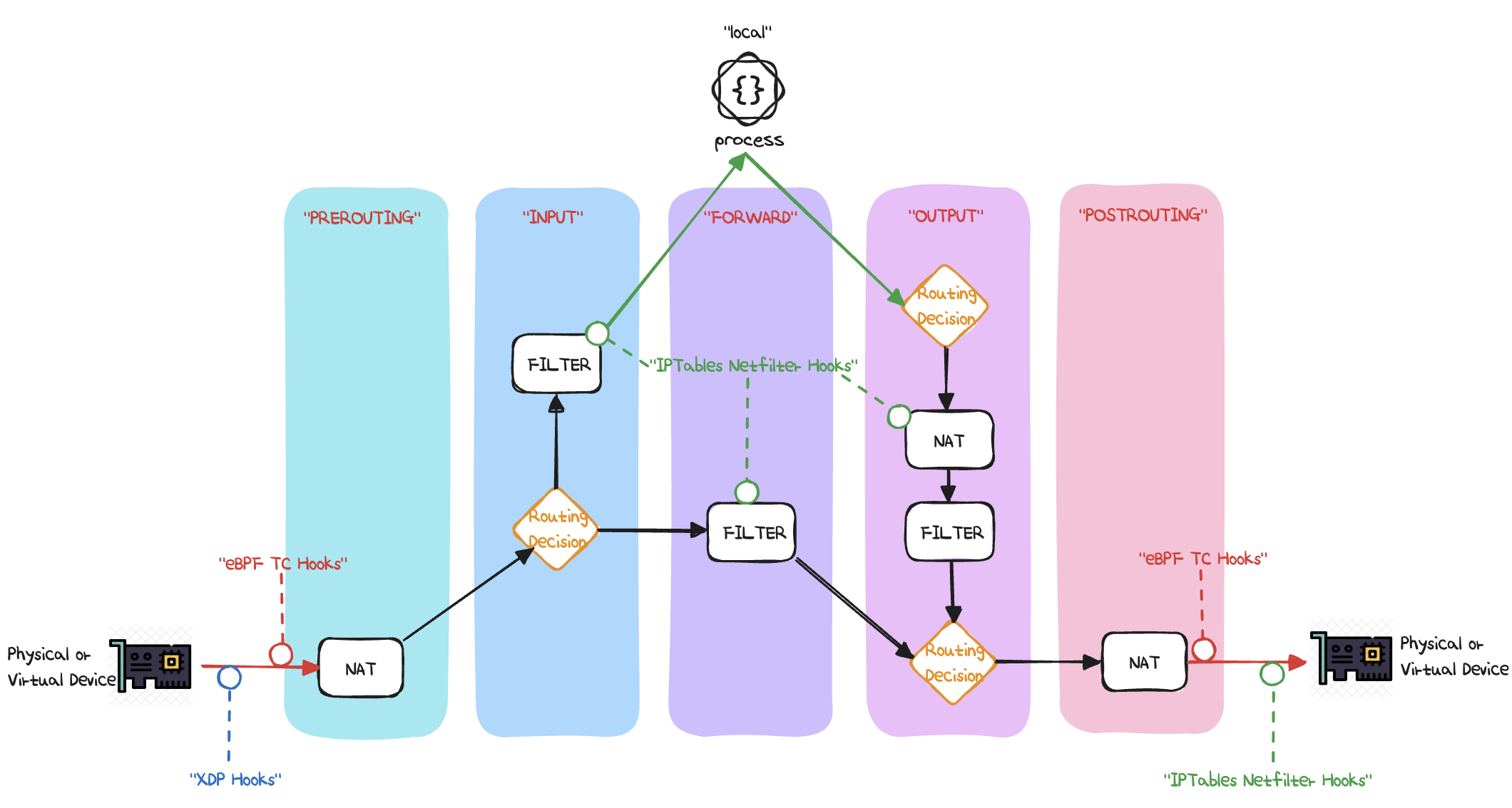 아래 그림처럼 network device 에서 들어오는 단계에서 TC hook을 통해 Kernel 내에서 많은 단계를 건너뛰게 합니다.