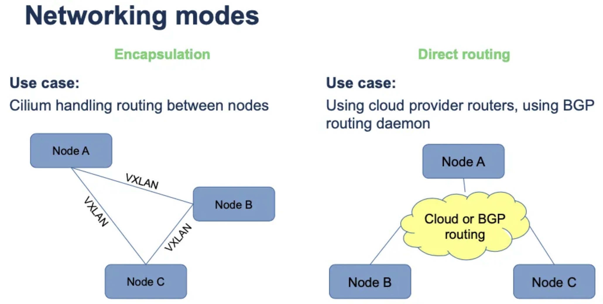 Cilium은 2 가지 네트워크 모드를 제공합니다. 그 중
