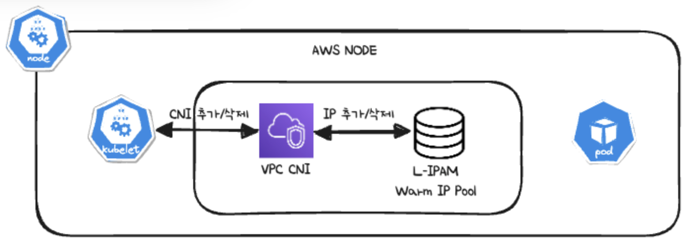 새로운 Pod이 노드에 추가되거나 기존 Pod이 제거될 때, kubelet에 의해 호출됩니다. - ipamd: 노드에 위치한 a long-running node-local IP Address Management(IPAM) 데몬입니다.