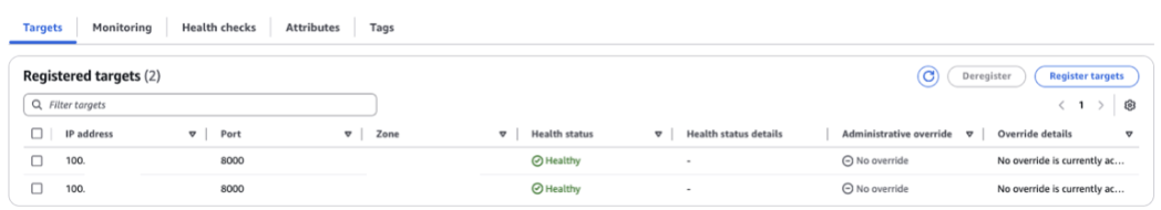 실제 콘솔에서 해당 로드밸런서의 타겟그룹을 보면