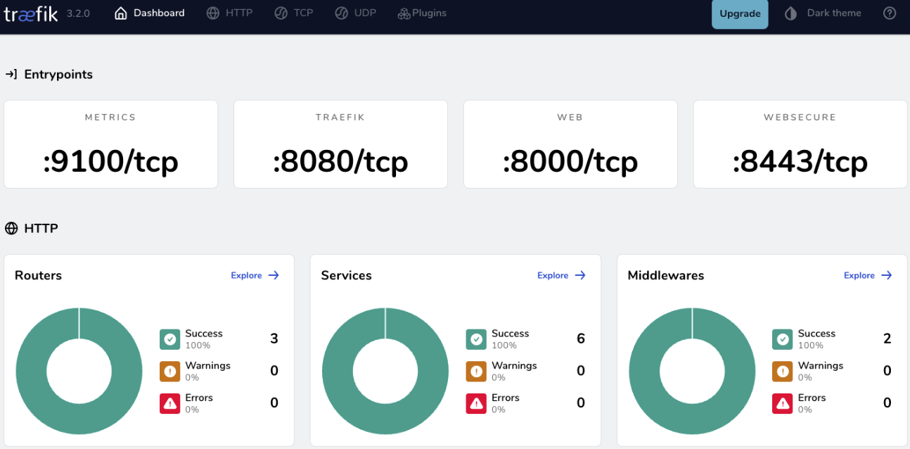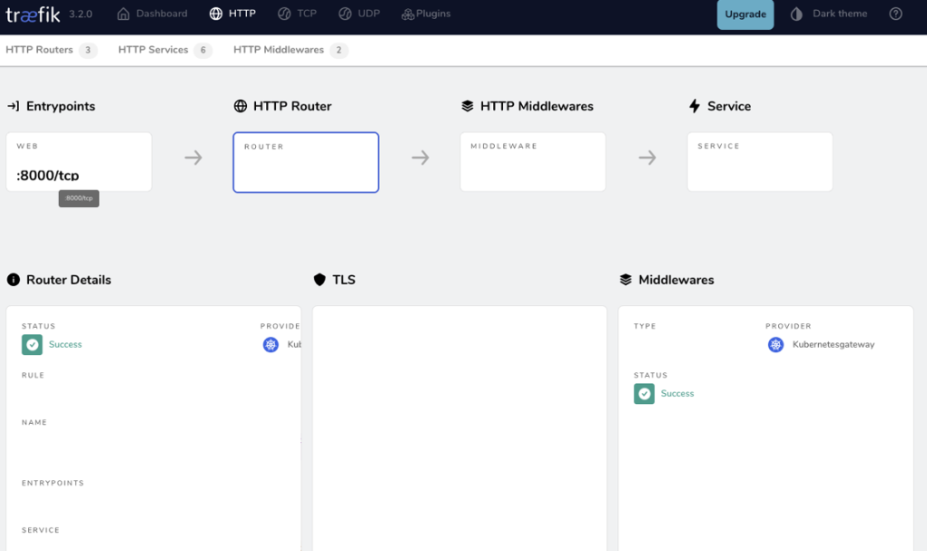 Traefik을 배포하고나면 insecure한 설정에서 Dashboard를 확인할 수 있습니다.