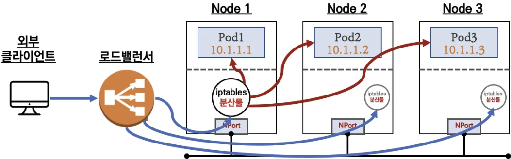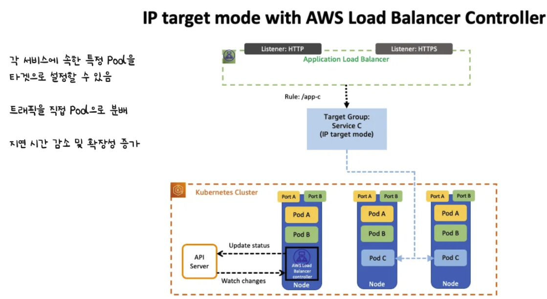 NLB에서 바로 Pod의 IP로 통신하는 것이죠. 그래서 각 Node의 iptable을 거쳐서 다른 곳으로 가도 되지 않아서 통신이 더 빠르다는 장점이 있습니다.
