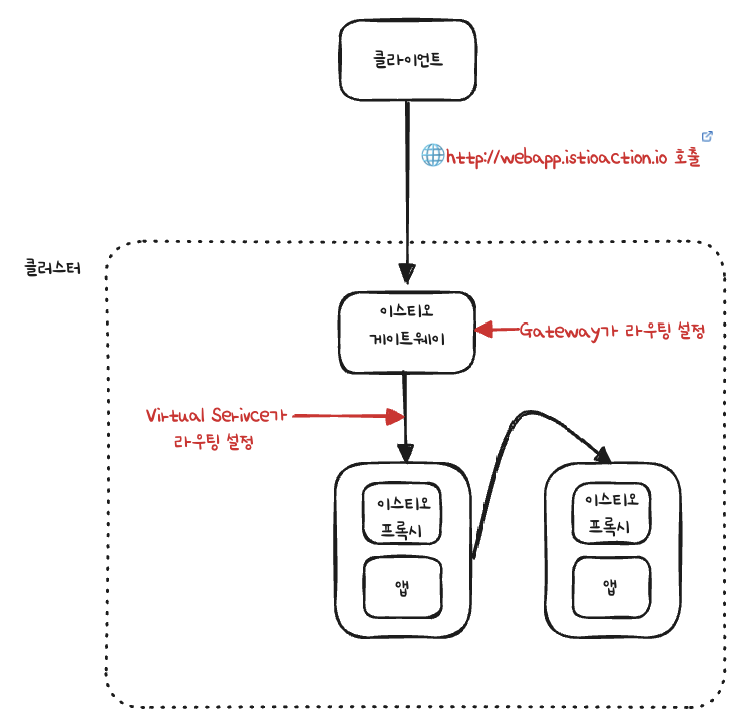 - 도메인이 webapp.istioinaction.io와 일치하는 트래픽을