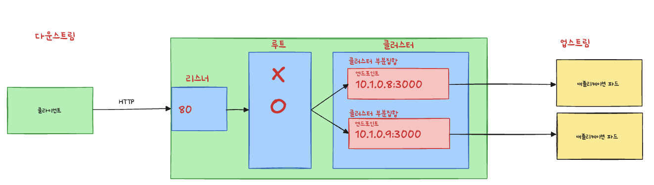 - 인그레스 게이트웨이 : 트래픽을 클러스터로 허용