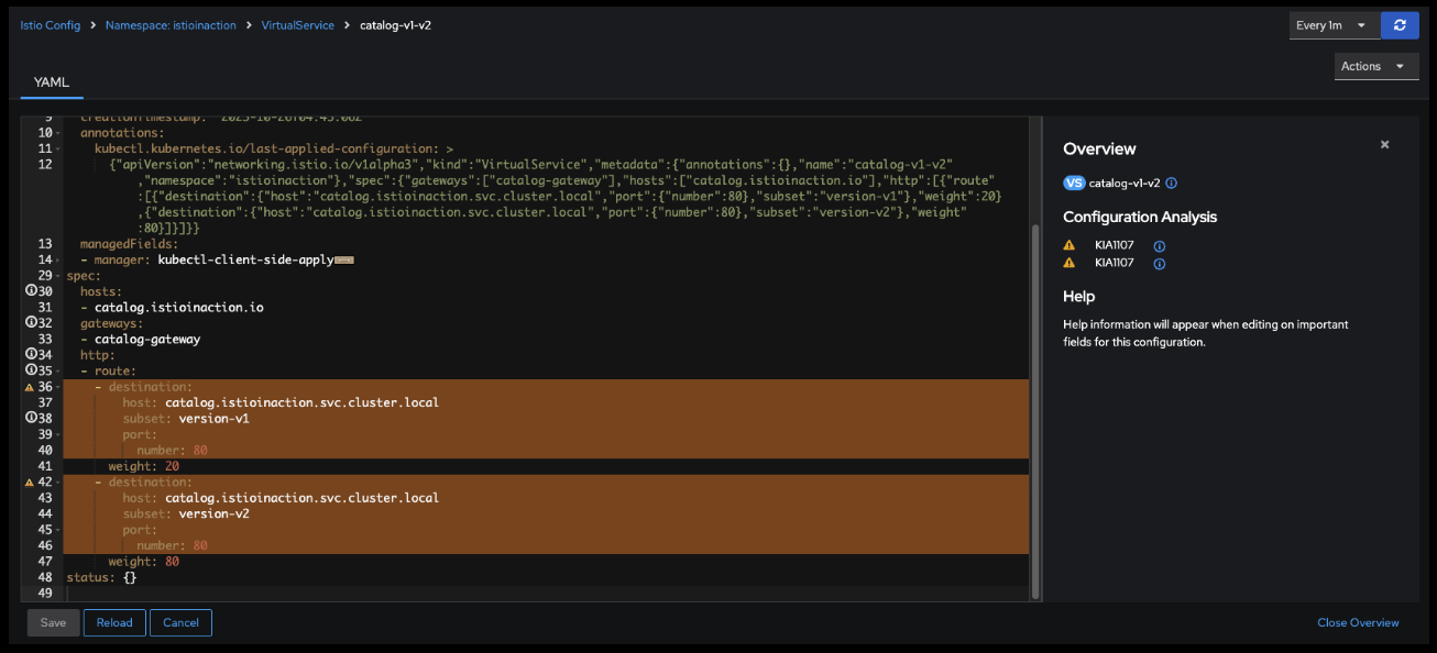 ✔ No validation issues found when analyzing ch10/catalog-destinationrule-v1-v2.yaml.